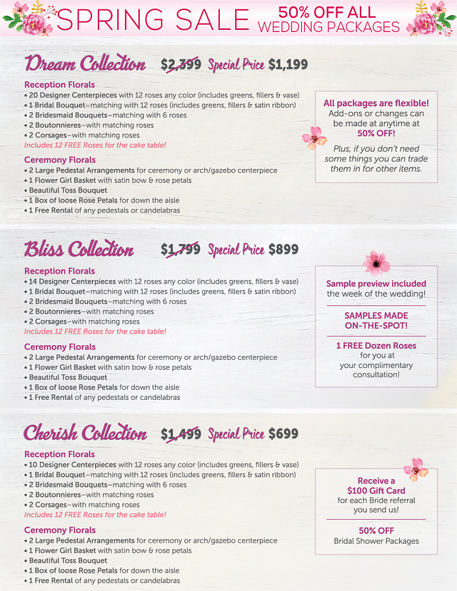 Over 10,000 Happy Brides Love and Have Used 800RoseBig! Your Wedding Packages Are 50% Off We Offer Fast Delivery All Over Southern California